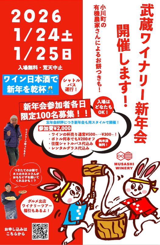 武蔵ワイナリーの新年会2026 | 1月24日(土)25日(日)開催